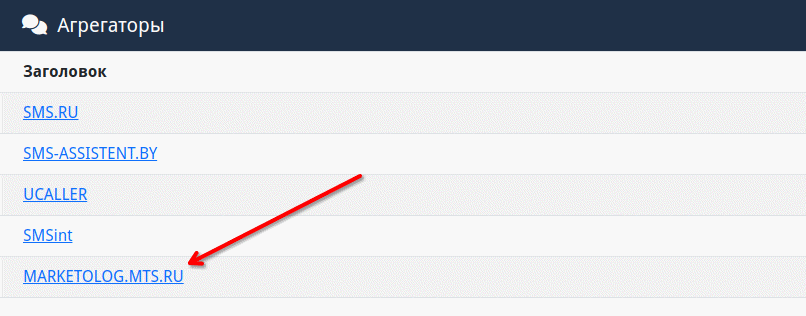 Затем выпадающий список «Агрегатор» устанавливаем в значение «MARKETOLOG.MTS.RU».