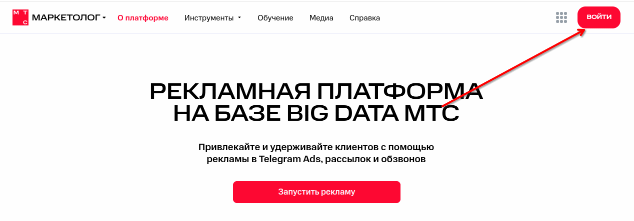 Первое, что мы должны сделать — это пройти регистрацию в сервисе «МТС Маркетолог».