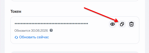 Для этого создатели личного кабинета нам представили замечательную кнопку, нажатие на которую позволит скопировать токен в буфер обмена.
