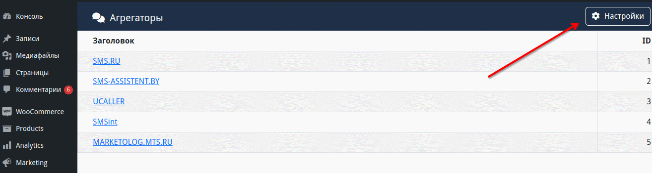 Далее сохраняем поля и переходим в общие настройки плагина. Для этого в списке агрегаторов, в правом верхнем углу, нажимаем кнопку «Настройки».