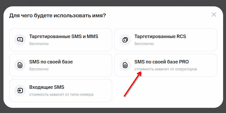...после чего откроется всплывающее окно, где мы нажимаем на кнопку «SMS по своей базе PRO».