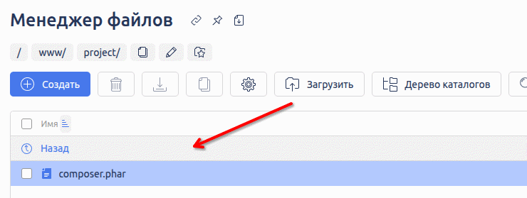 Для последующей работы, на своём сервере, я создал каталог «project», куда и загрузил файл «composer.phar».